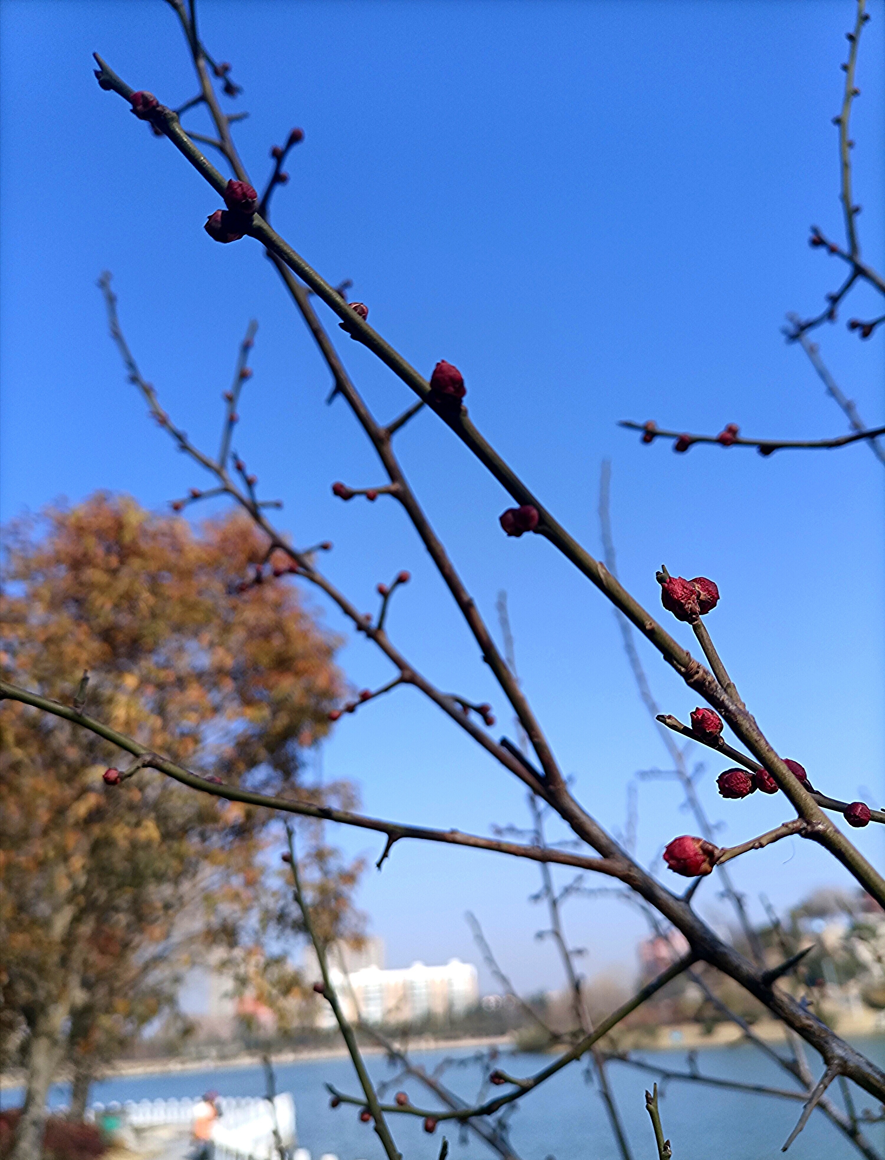 1月14日,我市天氣晴朗,周口公園環(huán)湖步道邊上的梅樹上,一朵朵含苞待放的梅花嬌艷欲滴,就像一個個羞怯的小小舞者,正在為登臺綻放而積攢力氣和勇氣。