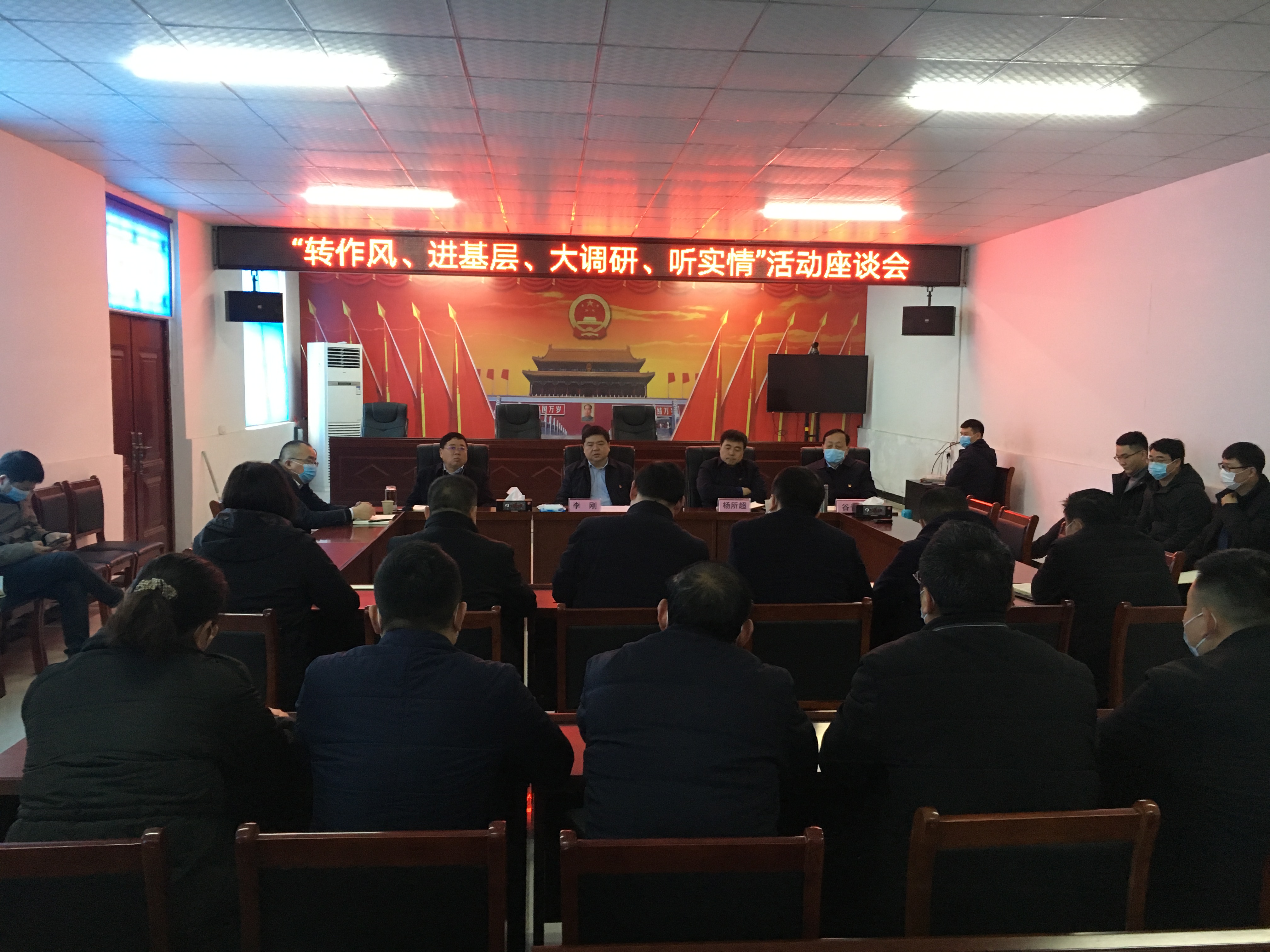 慰問結(jié)束后,李剛一行到衛(wèi)真辦事處開展"轉(zhuǎn)作風、進基層、大調(diào)研、聽實情"活動,召開座談會,聽取辦事處工作匯報,并圍繞基層社區(qū)黨建、經(jīng)濟發(fā)展思路、疫情防控、城市管理、信訪穩(wěn)定等工作進行座談交流。調(diào)研組工作人員、衛(wèi)真辦事處全體班子成員及后備干部參加座談。