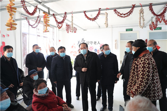 太康縣大許寨格花里行政村居村聯(lián)養(yǎng)點(diǎn)占地5畝,入住特困老人80余人,社會(huì)留守老人3人,老人們?cè)谶@里有吃有穿還有娛樂活動(dòng),生活得十分幸福。徐濟(jì)超一行走進(jìn)大許寨鎮(zhèn)葛花李居村聯(lián)養(yǎng)點(diǎn),向老人們祝賀新春。徐濟(jì)超指出,各級(jí)各部門要始終堅(jiān)持以人民為中心的發(fā)展思想,踐行初心使命,聚焦群眾冷暖,用足用好惠民政策,千方百計(jì)幫助群眾解決實(shí)際問題,讓群眾老有所養(yǎng)、病有所醫(yī)、住有所居,讓大家共享改革發(fā)展成果,確保讓廣大群眾過個(gè)歡樂祥和的新春佳節(jié)。