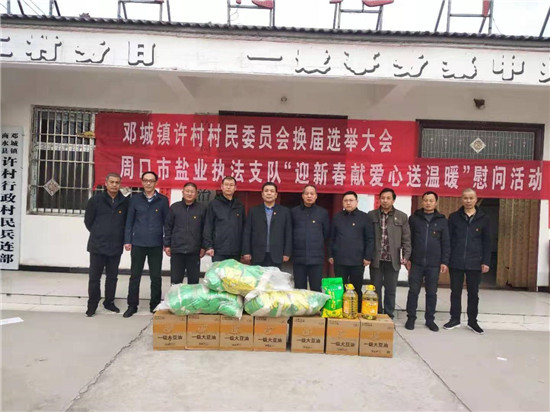 新春佳節(jié)來(lái)臨之際,為確保困難群眾過(guò)上一個(gè)歡樂(lè)喜慶文明祥和的春節(jié),2月7日,市鹽業(yè)執(zhí)法支隊(duì)黨委書(shū)記、支隊(duì)長(zhǎng)丁永華帶領(lǐng)班子成員到商水縣鄧城鎮(zhèn)許村開(kāi)展扶貧幫扶、春節(jié)慰問(wèn)活動(dòng),走訪慰問(wèn)困難群眾,為他們送去米、食用油等慰問(wèn)品,并送去黨和政府的關(guān)懷。