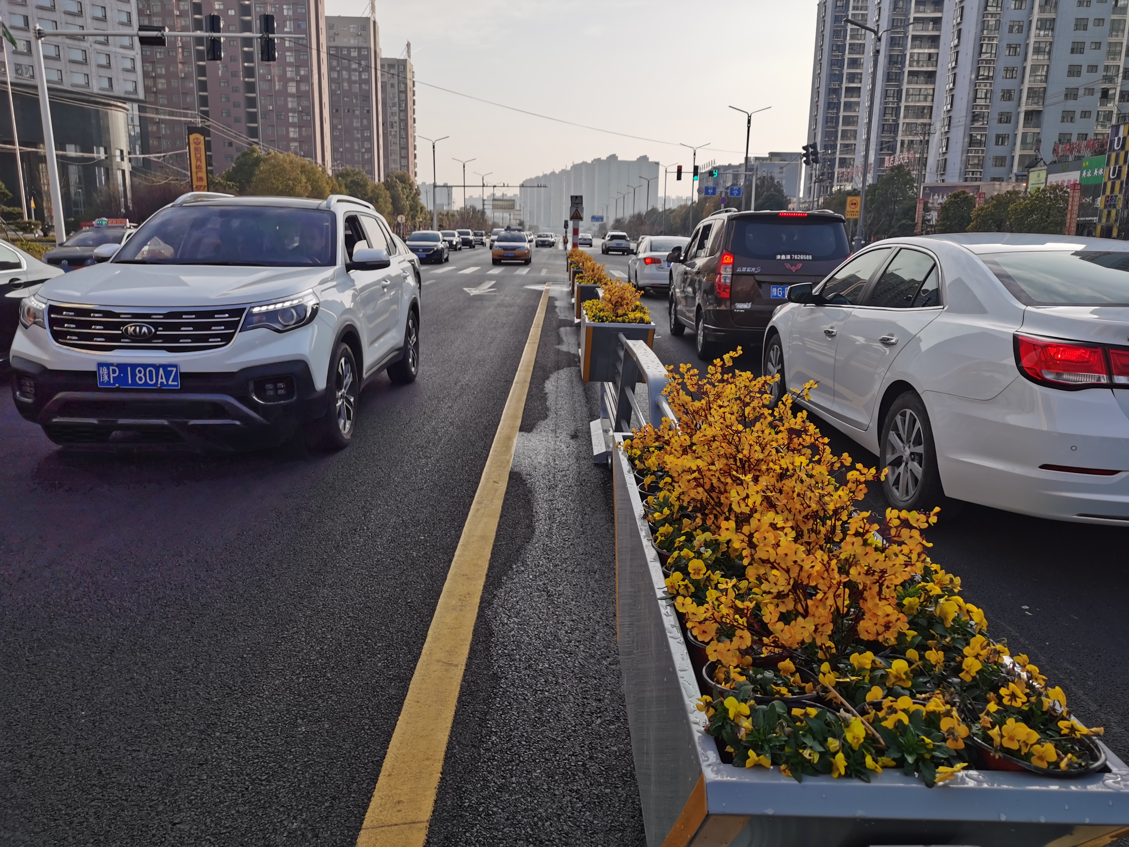 2月10日,走在商水縣陽(yáng)城大道,發(fā)現(xiàn)快車(chē)道中間的欄桿換成帶花卉盒栽的新型欄桿,銀灰色的簡(jiǎn)潔造型的欄桿、紅、藍(lán)、黃等各色花卉,扮靚了充滿(mǎn)節(jié)日喜慶氣氛的商水縣城。