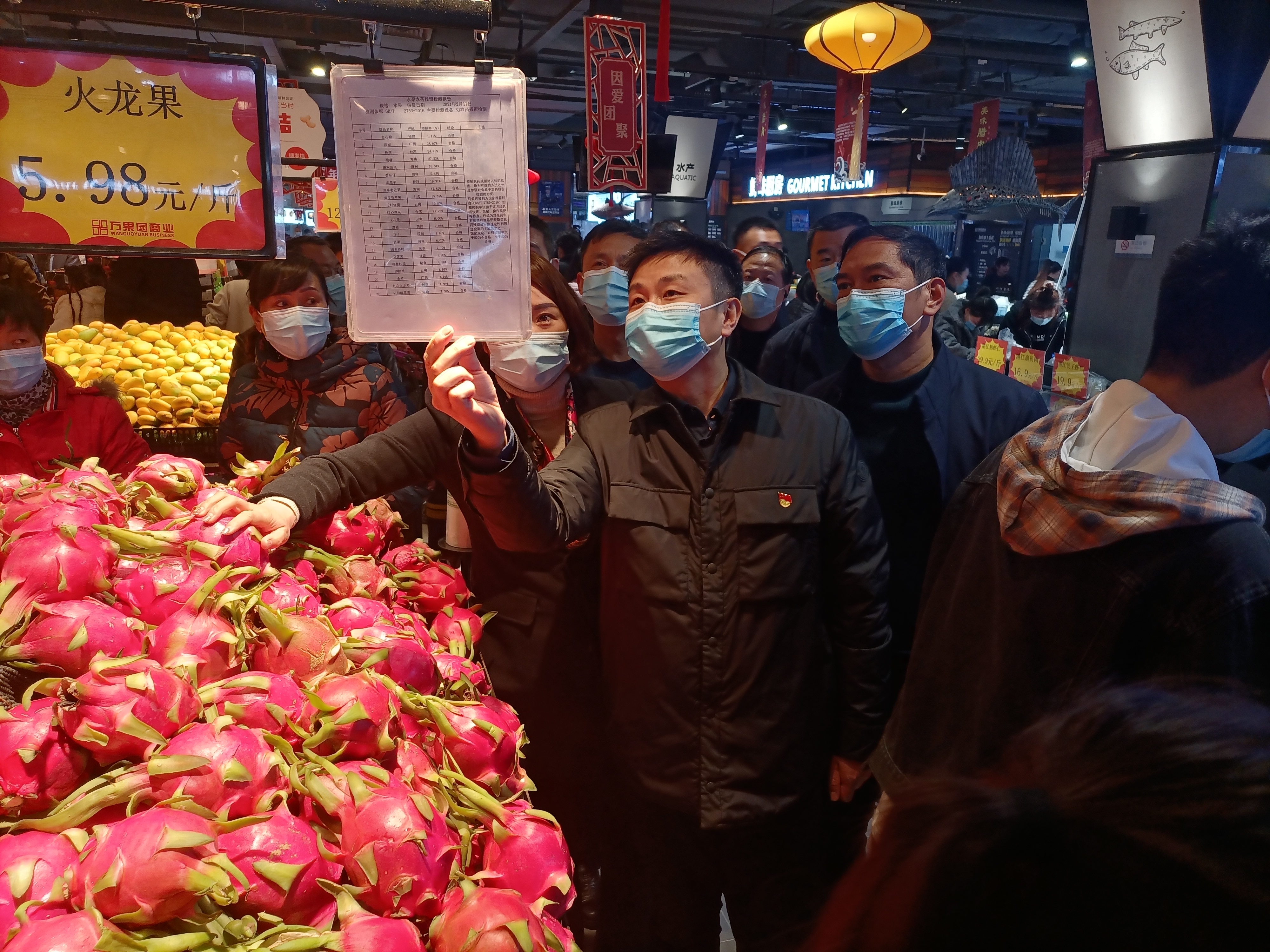 李湛一行還走進(jìn)萬果園量販五一廣場店,詳細(xì)了解疫情防控、安全管理、市場經(jīng)營及供應(yīng)情況。他指出,要統(tǒng)籌做好疫情防控、安全生產(chǎn)和市場供應(yīng)工作,嚴(yán)把進(jìn)貨關(guān)囗,保障節(jié)日供應(yīng),全力保證消防安全,有效遏制各類安全事故的發(fā)生,讓群眾放心、安全購物消費(fèi)。