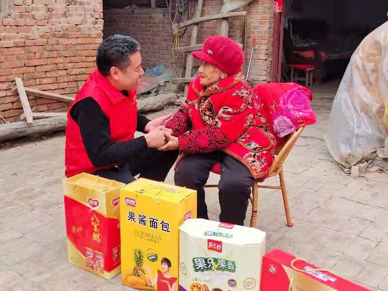 按照中國民間傳統(tǒng)習(xí)俗,新春伊始,人們都要穿戴新衣新帽走親訪友,拜年送祝福。2月12日,農(nóng)歷正月初一一大早,遜母口鎮(zhèn)心連心雷鋒服務(wù)隊隊長張新靜帶領(lǐng)志愿者張建設(shè)、劉賀敬、馮茹愿、賈衛(wèi)蒙、馮柯馨、歐樣等人就敲開了106歲的張占花家門。當(dāng)日,他們帶著核桃牛奶、面包、八寶粥,專門來為老人來拜年。 “新靜他們來了……”一聽聲音,張占花老人就猜到了是誰。經(jīng)過去年一年的幫扶,張新靜等人已經(jīng)與照顧占花老人成了“熟人”?!斑@些孩子們可沒少幫俺,又送物又幫俺打掃庭院”??吹街驹刚邆兊牡絹?,張占花老人的臉上掛滿笑容。