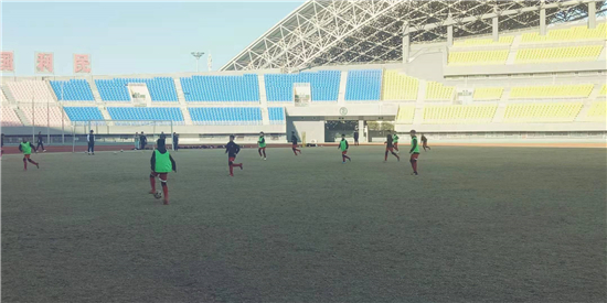 在足球場,市民有的在快走,有的在跑步,有的在拉伸,也有的家長帶著孩子玩球,一片其樂融融的景象。