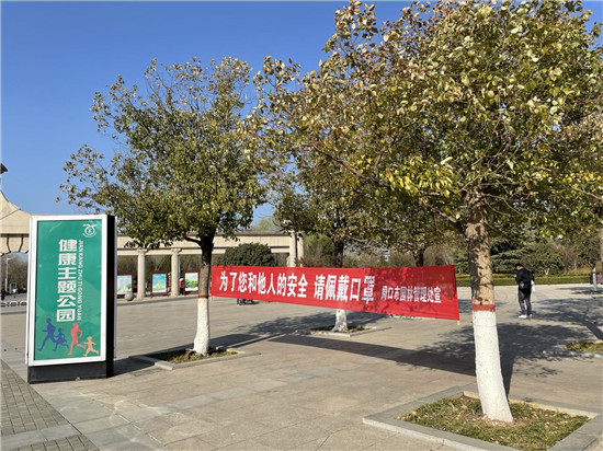 春色正宜結(jié)伴行。2月19日,記者來到周口公園,在公園門口,就看到了“進入公園請佩戴口罩”的宣傳標語。進入公園,藍天碧水映入眼簾,微風輕拂,花香陣陣,放眼望去,遠處還有孩童在放風箏,一派閑適景象……
