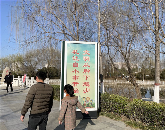 2017年8月18日,周口市委、市政府隆重召開創(chuàng)建全國綠化模范城、國家園林城市、全國雙擁模范城、國家衛(wèi)生城市、全國文明城市提名城市工作動員大會。此后,干部群眾同心同德、共同努力,我市的城市面貌和市民的精神風貌發(fā)生了巨大變化。2020年12月16日,周口市第四屆人民代表大會常務委員會第二十七次會議通過了《周口市文明行為促進條例》,該條例已于2021年1月1日實施。條例中第十四條規(guī)定公民應當文明旅游,應做到服從景區(qū)景點管理,愛護景區(qū)景點公共設(shè)施;不損害名勝古跡、珍貴文物、古樹名木及其他重要歷史文化遺產(chǎn),不刻畫、不涂污、不攀爬,不違反規(guī)定拍照、攝像、觸摸。在文明出游漸成市民自覺和共識的基礎(chǔ)上,又從制度層面進一步引導市民樹立文明出游從我做起、從現(xiàn)在做起的意識。③52021年1月,我市已順利入選全國文明城市提名城市。向全國文明城市沖擊,我們信心百倍。
