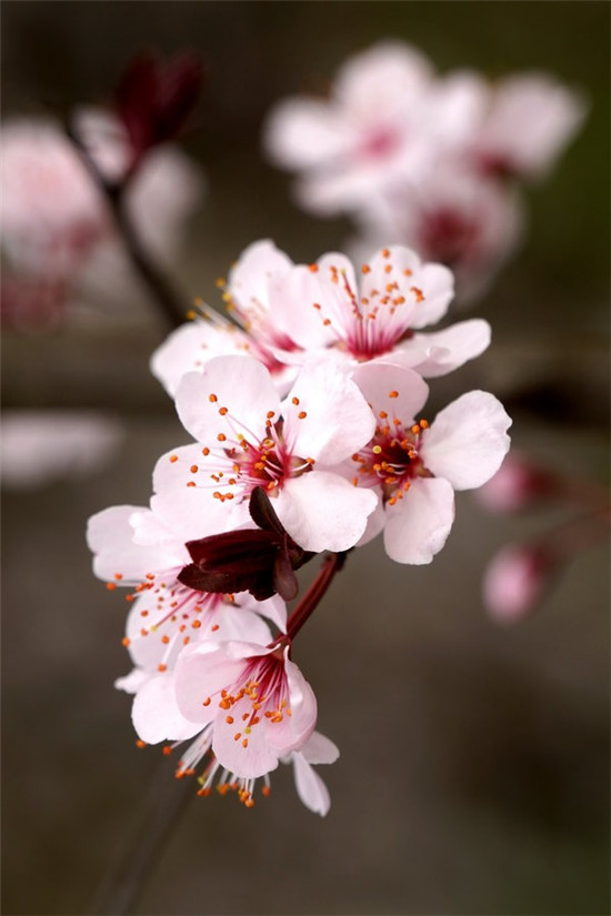 滿樹(shù)芳菲紅葉李,疏枝密蕾遍流霞。