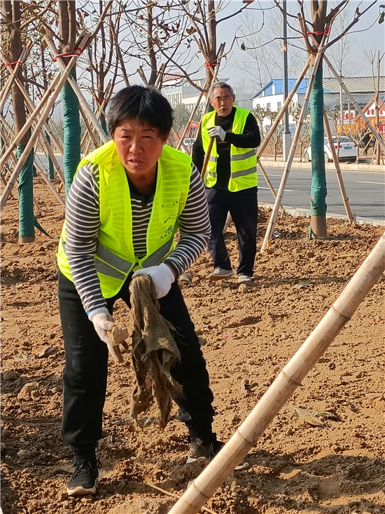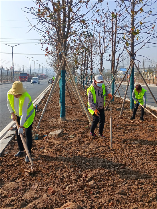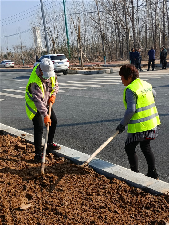 中州大道太清路至周口野生動物世界段主體工程基本完工,目前正在進行輔助工程的施工。圖為3月4日,幾名工人正在進行車道隔離帶和邊道景觀帶的平整綠化。③6