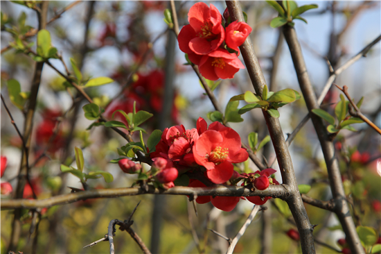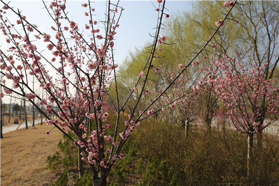 一排排的玉蘭花盛開爭(zhēng)艷,紫色的、白色的玉蘭花高聳在褐色的枝杈間,美不勝收。梨花、杏花、桃花、梅花組成了一道花墻,青枝、綠葉、紅花搭配得恰到好處,令市民忍不住駐足觀賞。②7