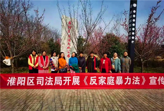 座談會結束之后,大家化身普法志愿者,前往淮陽主題森林公園·梅園,給前來賞花游玩的群眾普及法律知識,針對女性同胞講解婦女兒童保護、化妝品安全、財產(chǎn)權益、婚姻家庭權益、家庭暴力等方面的知識,進一步加強婦女們的法律意識。