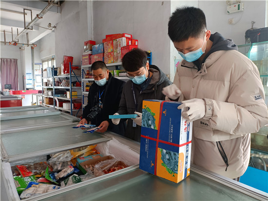 在“3·15”國際消費者權(quán)益保護日來臨之際,3月10日,市市場監(jiān)管局聯(lián)合市消協(xié)對進口冷鏈?zhǔn)称飞a(chǎn)經(jīng)營單位進行專項執(zhí)法檢查,進一步加大進口冷鏈?zhǔn)称飞a(chǎn)經(jīng)營單位疫情防控力度。