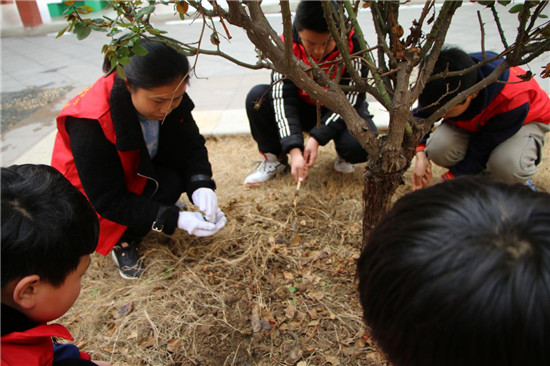 鄲城:師生大手拉小手養(yǎng)護花木成棟梁