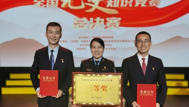9月27日下午,由黨史學習教育官網(wǎng)主辦,人民網(wǎng)、中國共產(chǎn)黨新聞網(wǎng)、湖北省黨史學習教育辦公室承辦的“全國黨史知識競賽”總決賽在湖北武漢舉行。周口市煙草專賣局許鑫參加的河南“出彩中原隊”經(jīng)過激烈競答,從32支參賽隊中脫穎而出,榮獲三等獎。