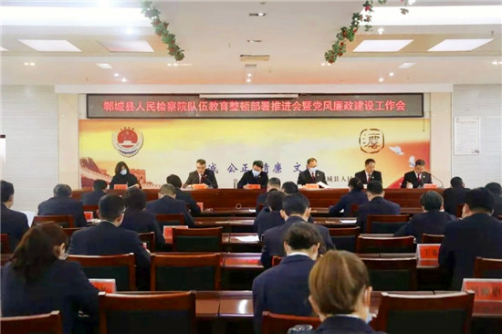 3月11日,鄲城縣人民檢察院召開隊伍教育整頓部署推進會暨黨風(fēng)廉政建設(shè)工作會。會議深入學(xué)習(xí)貫徹習(xí)近平新時代中國特色社會主義思想,特別是習(xí)近平法治思想,全面貫徹落實全國、全省、全市、全縣政法隊伍教育整頓動員部署會和高檢院、省院、市院檢察隊伍教育整頓動員部署會暨黨風(fēng)廉政建設(shè)會議精神??偨Y(jié)2020年縣檢察院全面從嚴管黨治檢工作,分析新形勢新任務(wù),對縣檢察院檢察隊伍教育整頓和今年的黨風(fēng)廉政建設(shè)工作統(tǒng)籌作出安排部署。