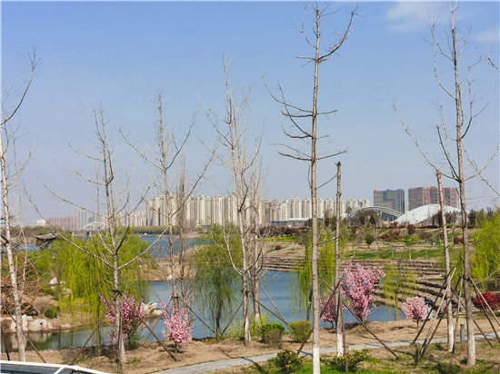 近日,在春花和藍天碧水映襯下,沙潁河兩岸桃花、海棠、石楠、櫻桃花競相綻放,沙潁河兩岸美如畫。