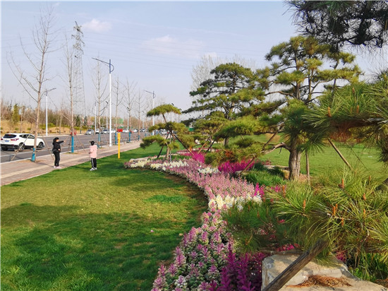 自從沙潁河改造后,沿河步道蜿蜒曲折,微地形高低錯落,兩側栽有香樟、槐樹、雪松、石楠等喬灌木,碧桃、櫻花等彩色樹種夾雜其間,營造出河岸飄渺悠揚的意境。