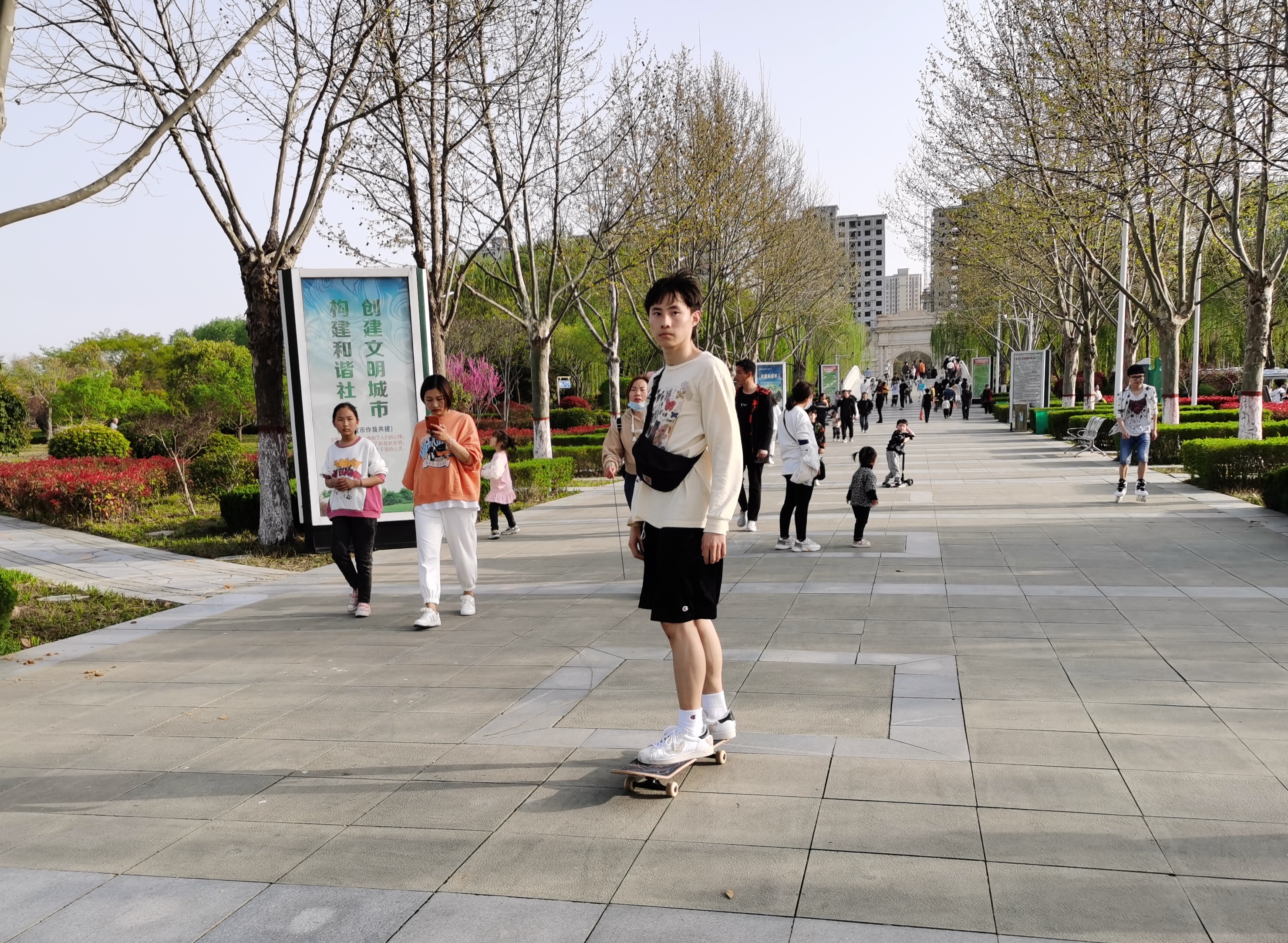 3月28日,周口市天氣晴好,氣溫也攀升至近期的最高溫度(25度),市民脫下厚重的冬衣 ,紛紛換上了輕薄的服裝。記者在公園和街頭看到,出行的市民中,不少時髦的年輕人換上了短褲和半袖。①5