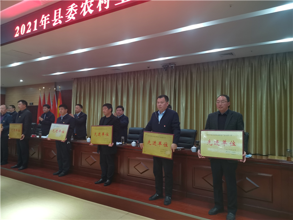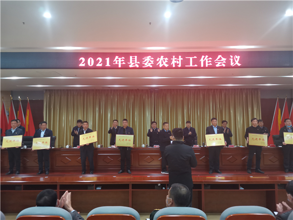 郭俊濤就貫徹落實(shí)會(huì)議精神及下一步農(nóng)村工作進(jìn)行具體安排部署??h委副書(shū)記許四軍宣讀了縣委、縣政府關(guān)于表?yè)P(yáng)2020年度農(nóng)業(yè)農(nóng)村工作先進(jìn)單位、先進(jìn)個(gè)人的通報(bào)。會(huì)議還對(duì)受表彰的先進(jìn)單位代表進(jìn)行了頒獎(jiǎng)。