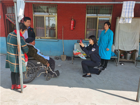 在大王樓敬老院康養(yǎng)的趙中原老人,已經(jīng)八旬有余,因常年臥床,行動(dòng)不便一直未能辦理二代居民身份證。三月下旬,其突發(fā)疾病,急需辦理醫(yī)保手續(xù)入院治療。但由于沒有身份證無法辦理相關(guān)手續(xù),這可急壞了敬老院負(fù)責(zé)人和工作人員。按正常程序,需要帶老人去派出所戶籍室采集人像及指紋信息,由于老人年邁又行動(dòng)不便,他們選擇向沈丘縣公安局西關(guān)派出所求助。接到電話后,西關(guān)派出所戶籍民警王欠積極與社區(qū)民警高坤朋一道前往敬老院。為了采集到合格信息,王欠與敬老院工作人員固定好老人坐姿,自己單膝下跪,為趙中原老人拍照。由于老人年邁且長期臥床,坐姿和面部表情不好調(diào)整,王欠反復(fù)十余次單膝跪地,才采集到合格的人像信息。