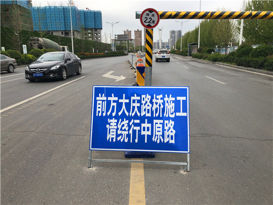 在大慶路橋南、北兩個上橋口,已安裝了高為2.2米的限高桿,施工路段的東側(cè)修有4個車道的便道,各車道中間設有臨時護欄,低于2.2米的車輛可以通行。值得提醒的是,該路段早、晚高峰期時較為擁堵,希望市民提前繞行(可繞行至中原路、八一大道)。