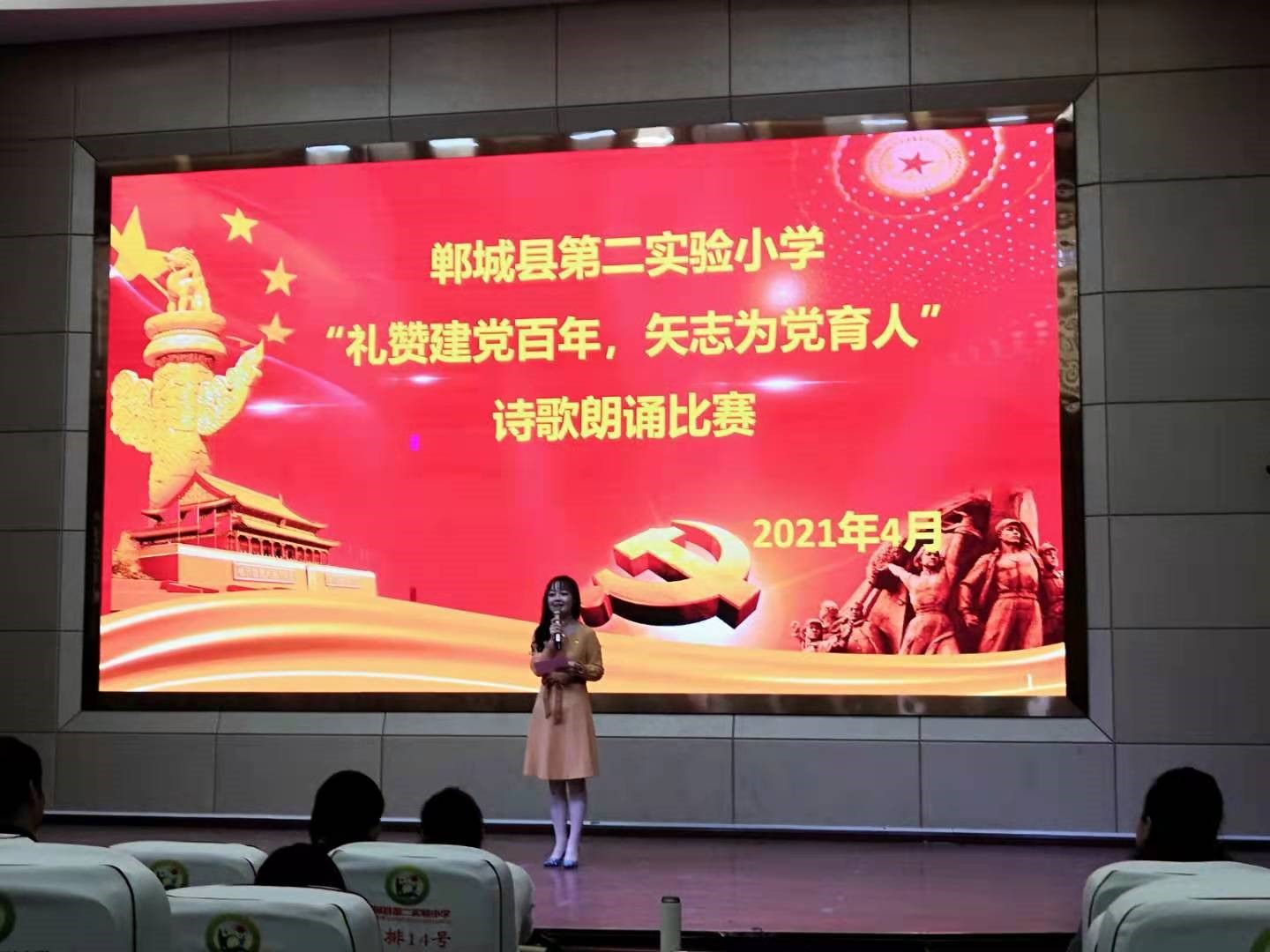 4月14日,鄲城縣第二實驗小學(xué)舉行關(guān)于“百年榮光·每個人都了不起”系列主題活動——獻禮建黨100周年詩歌朗誦比賽。26位教師分10支代表隊參賽。