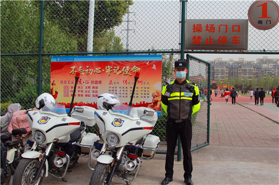 4月16日,鄲城一高舉行第12屆18歲成人儀式暨奠基高考決勝2022誓師大會。鄲城縣公安局副局長朱衛(wèi)兵率領交警鐵騎隊兵分4路,從早上7時至上午11時在學校周圍維護交通秩序,確保數千名家長的車輛有序停放,疏堵保暢。