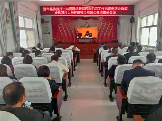 4月16日,西華縣防范打擊電信網絡新型違法犯罪工作電視電話會議暨全縣農村人居環(huán)境整治推進會以視頻會議形式召開。聶堆鎮(zhèn)在鎮(zhèn)政府三樓會議室設置分會場,組織鎮(zhèn)政府全體干部、派出所所長、各村支部書記參加會議。