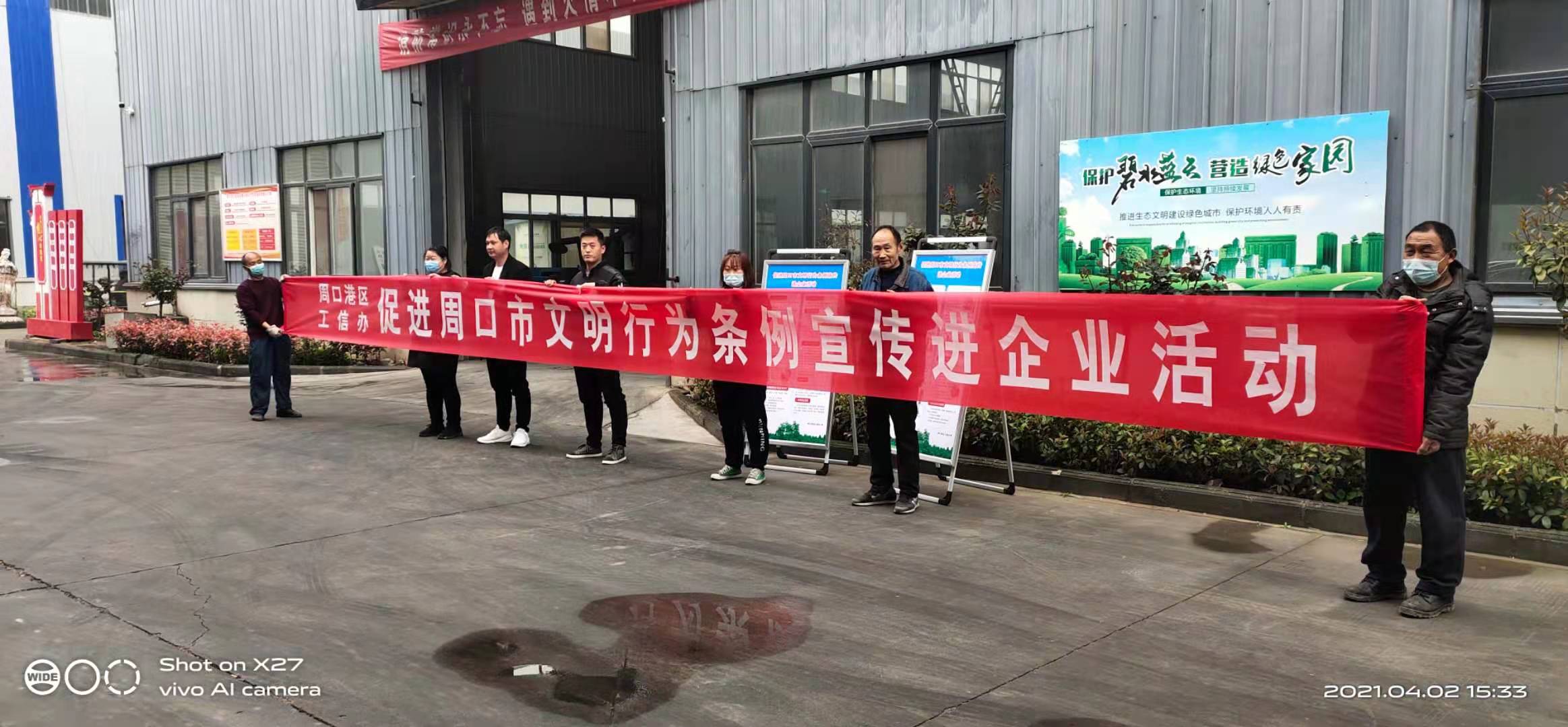 4月2日下午,周口港區(qū)工信辦組織人員開展宣傳《周口市文明行為促進條例》進企業(yè)的活動。