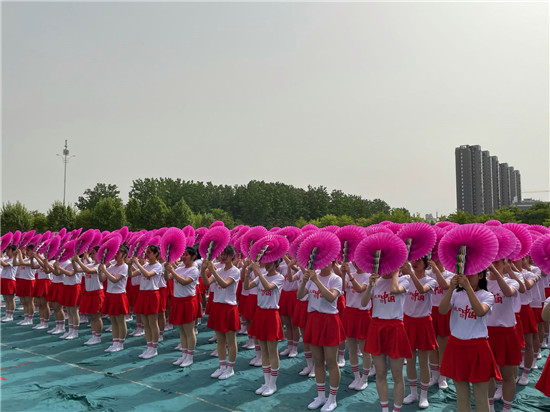 開幕式還舉行了彩扇舞、啦啦操、中國功夫、歌曲等文體表演。其中,彩扇舞《盛世花開》,由該校文化教育學院300名女生手持彩扇,跟隨著不同的音樂節(jié)奏變換著不同的色彩與隊形,依次拼出由鐮刀和錘頭組成的中國共產(chǎn)黨黨徽、象征體育精神的奧運五環(huán)、“慶祝建黨100周年”、“周職20周年校慶”等圖形和字樣,表達著對黨的熱愛和對學校的祝福。表演者王真真說:“大家協(xié)同配合才能把節(jié)目表演好,這個節(jié)目我們排練了一個多月。雖然很辛苦,但是看到節(jié)目順利演出,感到很有成就感?!?/p>