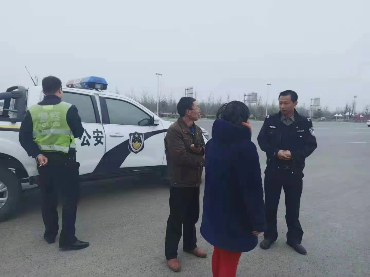 圖為高速民警將迷路女子安全地交給其親屬