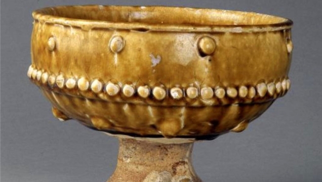 • 在河南省周口市博物館就陳列著一件保存完整,制作工藝精湛,造型精美的唐代壽州窯黃釉乳釘紋豆,它給人以美的享受,是同類器物中的精品,為國家一級珍貴文物。