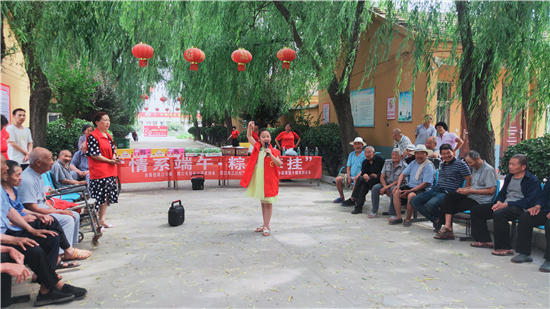 當(dāng)日上午,志愿者帶著粽子、西瓜、香蕉、面包等來(lái)到平店鄉(xiāng)敬老院,為這里的老人提供義診、義剪、義演等服務(wù),陪老人提前過(guò)端午節(jié)。