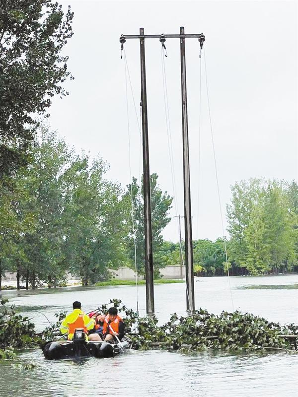 國網周口供電公司職工駕駛沖鋒舟在水中搶修線路。童之潔 攝