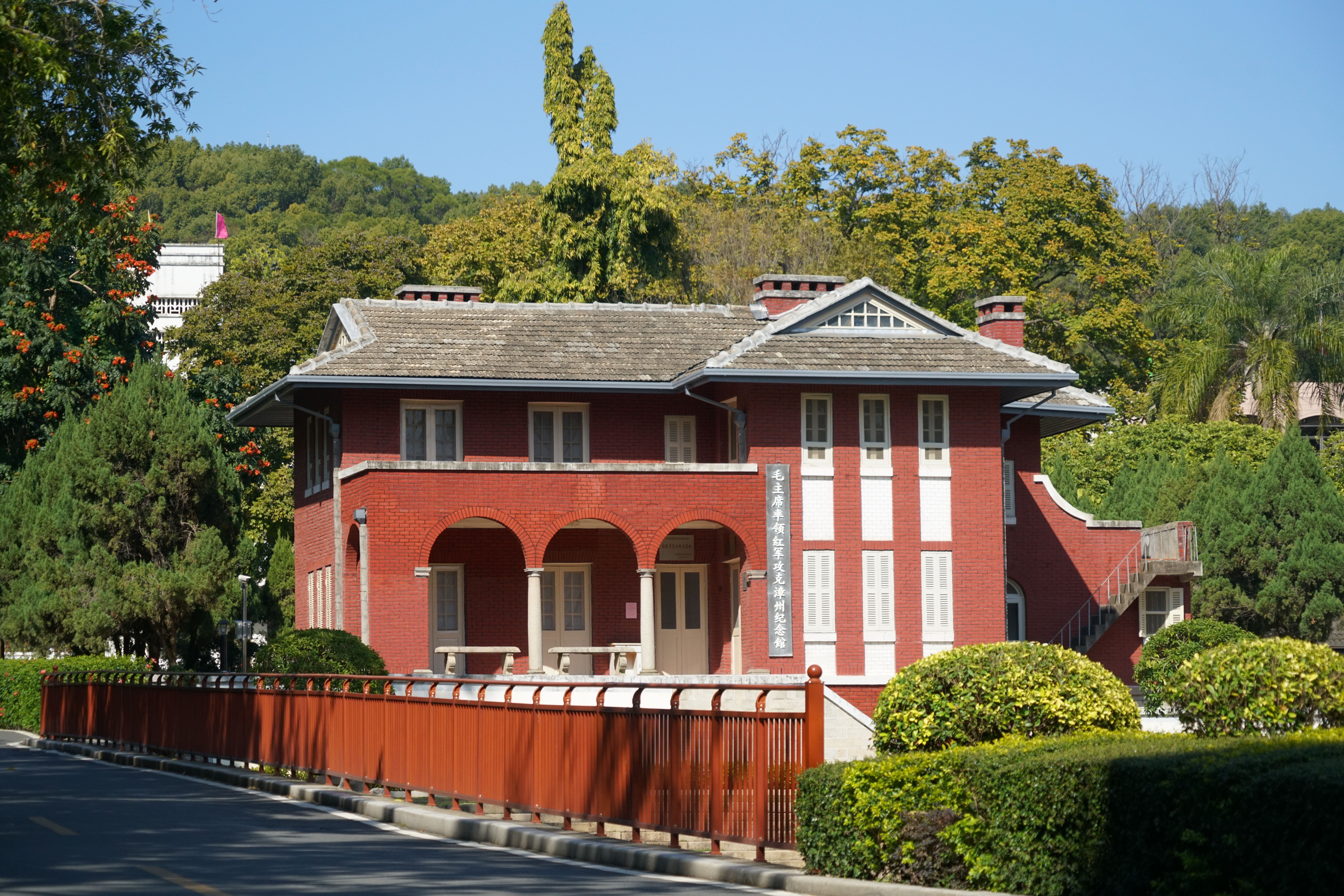 漳州市是福建省重要的革命蘇區(qū)老區(qū),歷史上多次發(fā)生對中國革命進(jìn)程有重大影響的事件,紅色遺址眾多。薌城區(qū)芝山大院內(nèi)有座三層小洋樓是“毛主席率領(lǐng)紅軍攻克漳州紀(jì)念館”,人們親切地稱它為“芝山紅樓”。東征漳州勝利后,毛澤東同志便居住于此,指揮紅軍進(jìn)漳期間各項工作。89年來,綠蔭掩映的芝山紅樓守護(hù)著漳州人的榮耀。