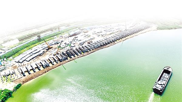 • 鹿邑港區(qū)玄武作業(yè)區(qū)于2021年5月底破土動(dòng)工,批復(fù)岸線118米,建設(shè)2個(gè)500噸級泊位,設(shè)計(jì)年通過能力為散貨進(jìn)出口100萬噸。目前,鹿邑港區(qū)玄武作業(yè)區(qū)主體工程已全部完工,機(jī)械作業(yè)設(shè)備已全部到位。記者在現(xiàn)場看到,工人正在進(jìn)行后方陸域及服務(wù)區(qū)建設(shè)。