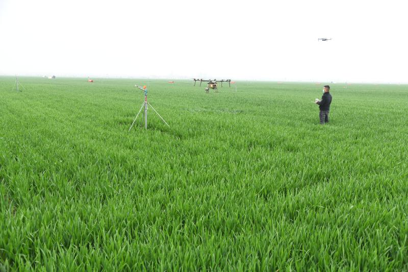 圖為商水縣高標(biāo)準(zhǔn)農(nóng)田示范區(qū)內(nèi),技術(shù)人員在操作植保無人機(jī)噴灑農(nóng)藥。