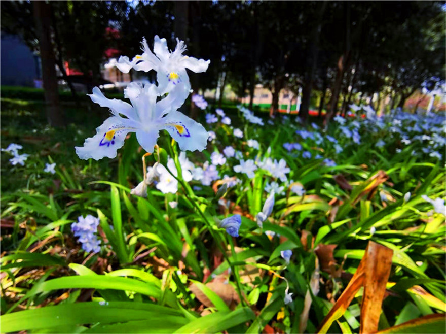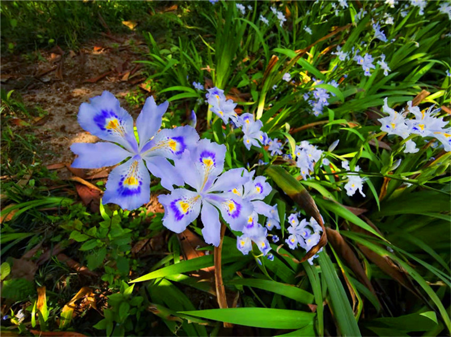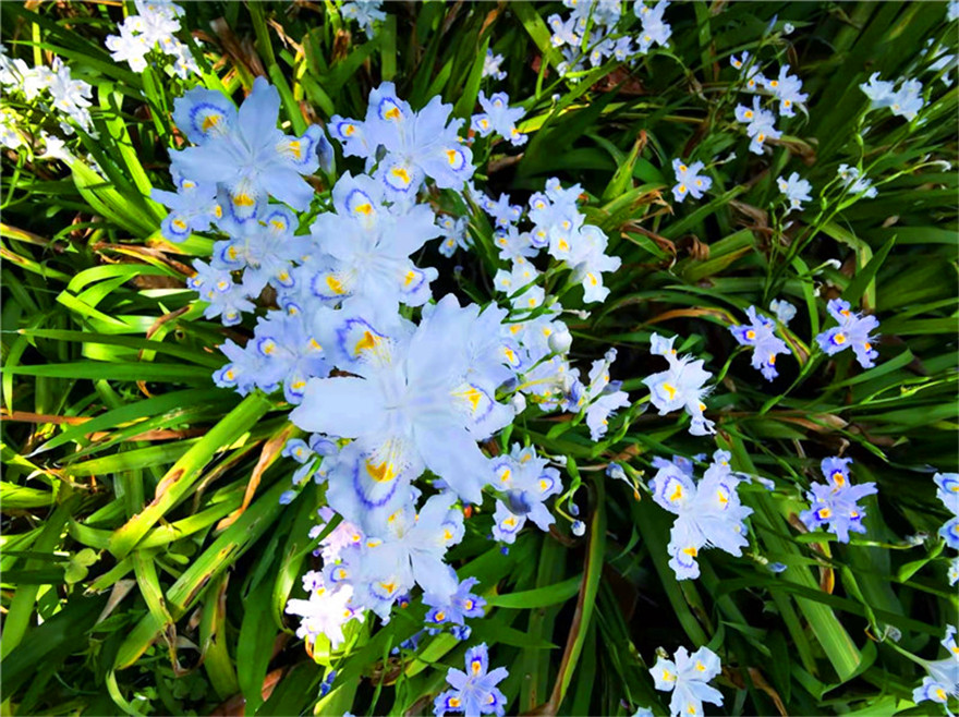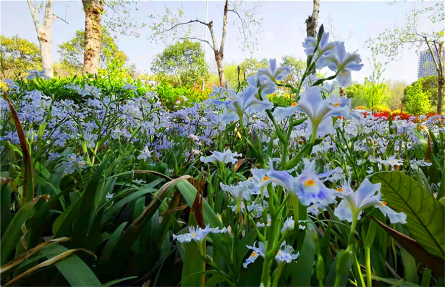 近日,濱河公園的蝴蝶花開(kāi)了,微風(fēng)輕撫,如千百只彩蝶在綠葉叢中蹁躚起舞,典雅清麗,清香四溢。②10