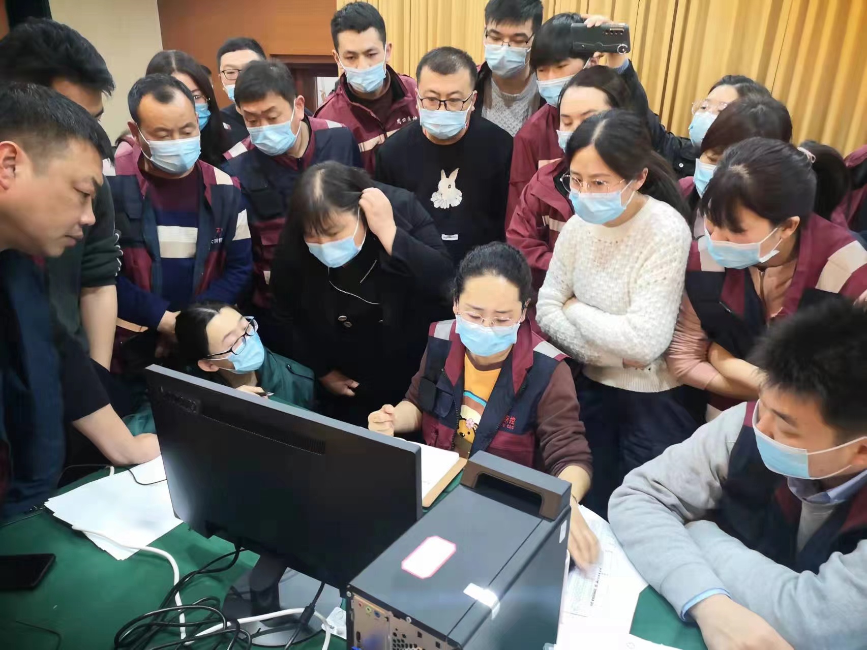3月22日,突然收到了太康出現(xiàn)疫情的消息,袁倩來不及任何思考和準(zhǔn)備,火速前往單位集合趕赴太康疫情現(xiàn)場。此次袁倩承擔(dān)的任務(wù)是作為流調(diào)溯源信息組的組長,負(fù)責(zé)派發(fā)流調(diào)任務(wù)、向隔離轉(zhuǎn)運(yùn)專班推送密接和次密接人員名單、和公安對接去過風(fēng)險(xiǎn)場所的名單等工作。這是一個(gè)看似簡單實(shí)則繁瑣的任務(wù),發(fā)揮著協(xié)調(diào)流調(diào)溯源專班內(nèi)部信息流轉(zhuǎn)以及對接其他專班的樞紐作用,關(guān)系到信息流轉(zhuǎn)的暢通和效率。她們必須隨時(shí)接收陽性病例信息并第一時(shí)間完成任務(wù)派發(fā)和密接、次密接名單推送。睡眠不足、吃飯沒點(diǎn)、嗓子累啞成為工作常態(tài),絕大多數(shù)隊(duì)員是靠著金嗓子喉寶、西瓜霜含片在堅(jiān)持工作。她和同事們克服連續(xù)奮戰(zhàn)的苦與累之后,終于挖掘了所有病例、密接人員、次密接人員以及他們?nèi)ミ^的風(fēng)險(xiǎn)場所,第一時(shí)間切斷傳播途徑,遏制了疫情發(fā)展,最終為取得太康疫情的全面勝利作出了積極貢獻(xiàn)。