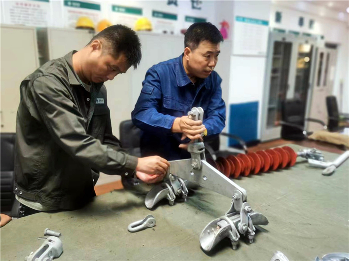 為把學(xué)習(xí)落到實(shí)處,提高班組成員主動學(xué)習(xí)的積極性,在當(dāng)日的學(xué)習(xí)中,經(jīng)驗(yàn)豐富的老師傅還手把手地帶領(lǐng)青年員工對金具進(jìn)行現(xiàn)場組裝。他們積極討論,相互切磋,取長補(bǔ)短。