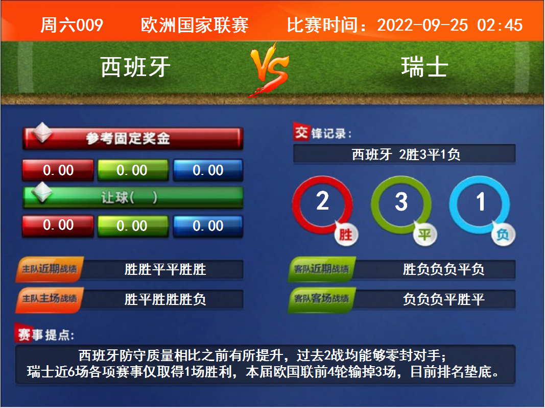 周六009  歐洲國(guó)家聯(lián)賽 西班牙VS瑞士