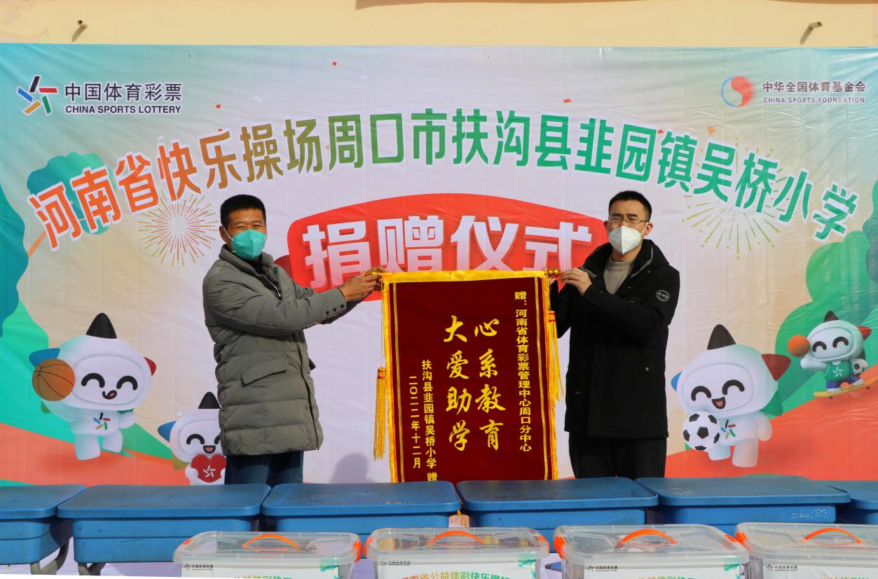 此次捐贈的體育器材有籃球、足球、排球、乒乓球拍、羽毛球拍等價(jià)值近2萬元的體育用品。為表達(dá)謝意,吳橋小學(xué)向周口體彩分中心贈送了“心系教育,大愛助學(xué)”的錦旗。