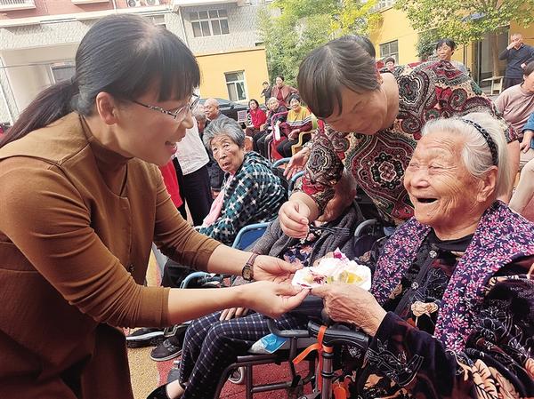 10月10日上午,周口市文昌幼兒園黨支部30余名黨員志愿者來到川匯區(qū)城南街道綜合養(yǎng)老中心,開展“愛滿金秋 情暖重陽”志愿服務活動。志愿者向老人送去慰問品,并表達對老年人的美好祝福。
