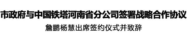 本報(bào)訊 (記者 李鳳霞) 11月18日,周口市人民政府與中國鐵塔河南省分公司簽署戰(zhàn)略合作協(xié)議。市長詹鵬,中國鐵塔河南省分公司黨委書記、總經(jīng)理?xiàng)罨鄢鱿灱s儀式并致辭。中國鐵塔河南省分公司副總經(jīng)理代沛、副市長梁建松代表雙方簽署戰(zhàn)略合作協(xié)議。市政府秘書長王文峰出席。