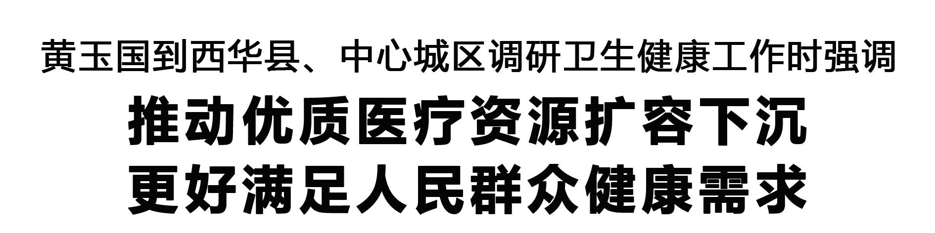 本報(bào)訊 (記者 王艷) 12月9日,市委書記黃玉國到西華縣、中心城區(qū)調(diào)研衛(wèi)生健康工作,強(qiáng)調(diào)要深入貫徹黨的二十屆四中全會(huì)精神和習(xí)近平總書記關(guān)于衛(wèi)生健康工作的重要論述,認(rèn)真落實(shí)省委十一屆十次全會(huì)精神,全面深化醫(yī)藥衛(wèi)生體制改革,加快補(bǔ)齊公共衛(wèi)生體系短板,持續(xù)推動(dòng)優(yōu)質(zhì)醫(yī)療資源擴(kuò)容下沉,更好滿足人民群眾健康需求。