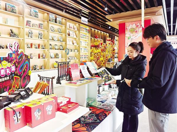 12月18日,在太昊伏羲陵文化旅游區(qū)旅游產(chǎn)品展廳,游客在欣賞非遺手工產(chǎn)品。近年來(lái),太昊伏羲始祖旅游區(qū)運(yùn)營(yíng)管理有限公司為豐富游客體驗(yàn),聚焦非遺手工、潮玩手辦等主題,開(kāi)發(fā)了近百個(gè)旅游新產(chǎn)品,以滿足游客多元化需求。 ...[詳細(xì)]