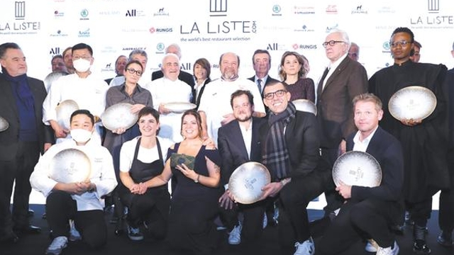 11月29日,在位于巴黎的法國外交部舉行的LA LISTE國際美食榜單揭曉活動現場,獲獎廚師合影留念?!?a href="http://m.fjxykj.com/content/2021-12/01/content_960943.html" target="_blank" >[詳細]