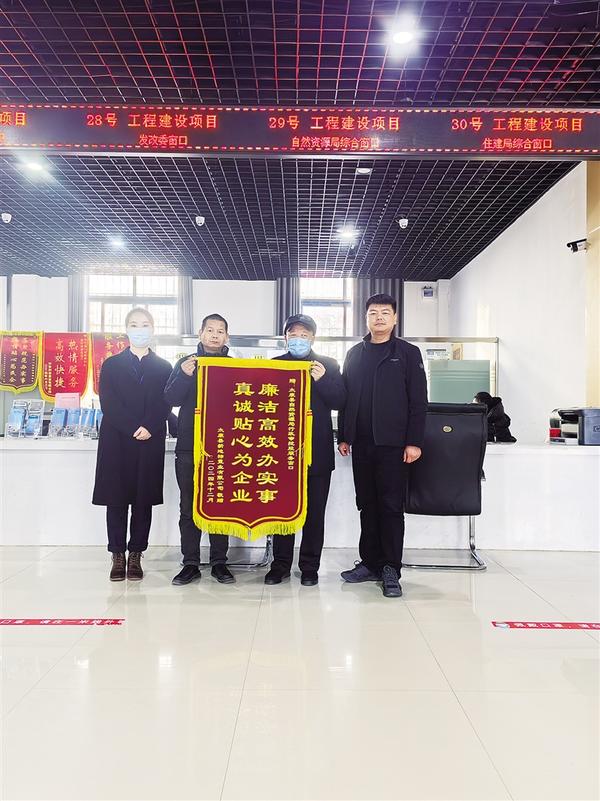 近日,太康縣某置業(yè)公司相關(guān)負(fù)責(zé)人將一面印有“廉潔高效辦實事 真誠貼心為企業(yè)”字樣的錦旗送到縣自然資源局,感謝工作人員為他們提供優(yōu)質(zhì)、高效、熱情的服務(wù)。