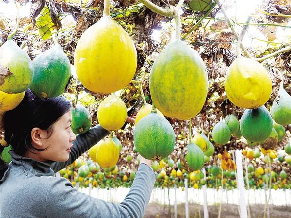 11月11日,記者在周營鎮(zhèn)謝營行政村一處生態(tài)瓜蔞產(chǎn)業(yè)基地看到,瓜蔞支架上藤蔓纏繞,一個個沉甸甸、金黃色的瓜蔞如同一盞盞燈籠懸掛在空中。村民正忙著采摘瓜蔞,整個基地呈現(xiàn)一派喜人的豐收景象。