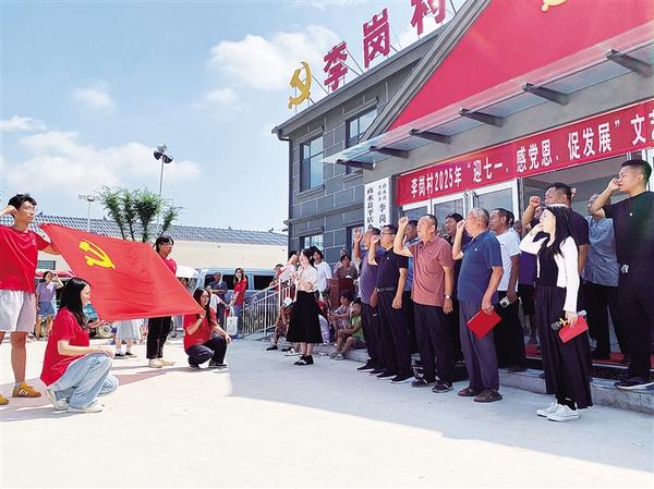 日前,黨員干部面向黨旗重溫入黨誓詞。商水縣平店鄉(xiāng)李崗村黨支部通過舉辦一場文藝匯演、共上一堂黨課、表彰一批優(yōu)秀黨員、重溫一次入黨誓詞等活動,慶祝中國共產黨成立104周年。