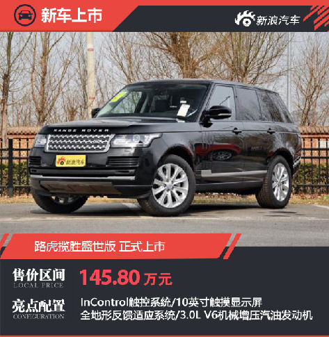 今日,路虎宣布攬勝盛世版正式上市,指導(dǎo)售價(jià)為145.80萬元?!?a href="http://m.fjxykj.com/content/2017-10/12/content_578072.htm" target="_blank" >[詳細(xì)]